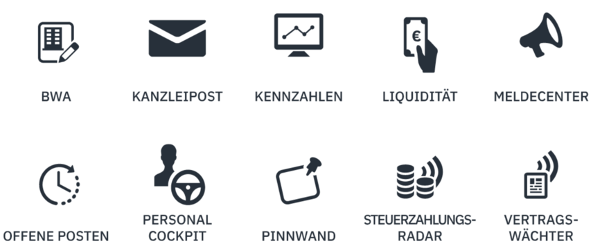 Es ist umfangreich und vielfältig in der Anwendung. Schließlich macht Individualität den Unterschied in der Beratung und das ist es, was in der Zukunft wichtig ist. Es wird darum gehen, nicht ein Steuerberater, sondern DER Steuerberater zu sein. Mit der großen Bandbreite an Auswertungen und Unterstützungsprozessen schaffen Sie eine Professionalisierung der Steuerberatung und deutliche Vertiefung der Zusammenarbeit mit Ihren Mandanten. Das einzigartige Tool verschafft Ihnen den Überblick von Steuerzahlungen, Fibu-Daten, Personalauswertungen, aktuellen betrieblichen Kennzahlen, BWA bis zur Bilanz.